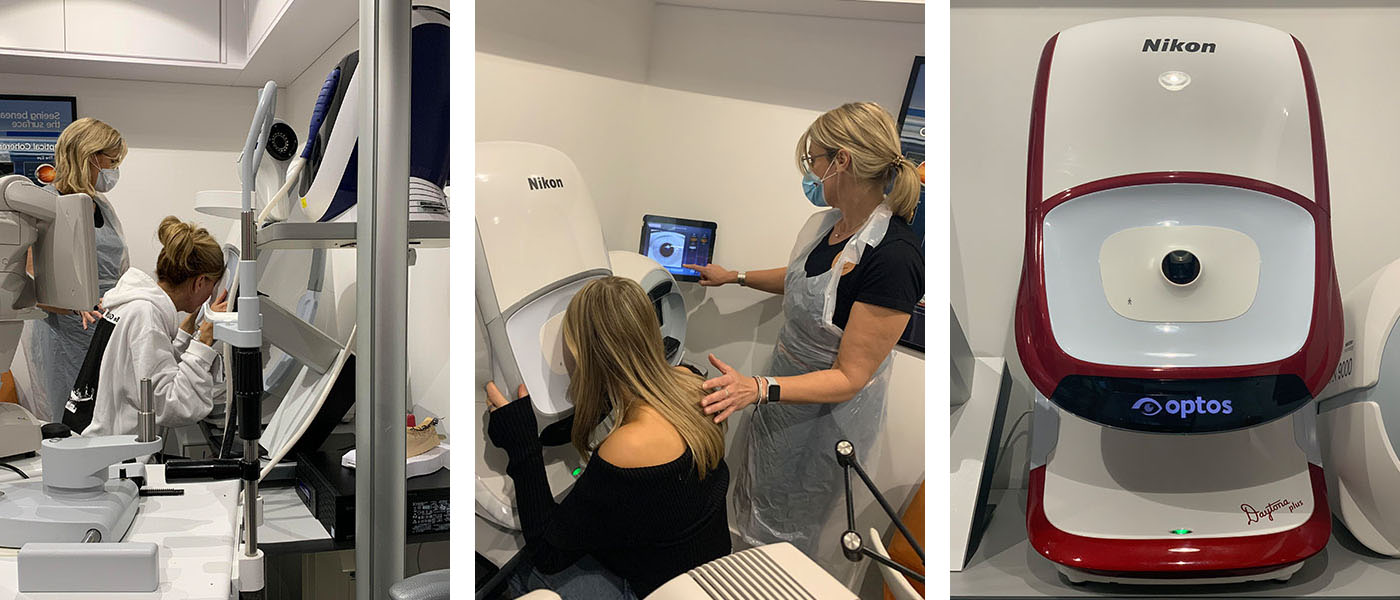 The optomap produces an image that is unique and provides us with a high-resolution 200° image to check the health of your retina. This is much wider than a traditional 45° image.